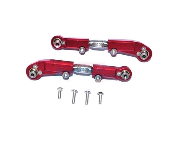 GPM Edelstahl Lenkstange mit Alu-Kugelpfannen rot GPM ARRMA Limitless, Infraction, Typhon 6s Alu Tuning für ARRMA 1/8 6S Modelle für bessere Performance, Stabilität und Optik in hochwertigem 6061T6 Aluminium und Edelstahl. Ersetzt 1:1 und passgenau das Originalteil. Original Name / Part No.: AR340070+AR330230 Part location: Front steering area Product major functions & usage: Assist the knuckle arms to complete steering process. Is this part adjustable? If yes … how and why/purpose? YES How: Insert tool into positioning hole of tie rod. Purpose: Adjust the length of tie rods. Accessories: Turnbuckle 2pcs Stainless Steel Round Head Screw 3x10 2pcs Stainless Steel Round Head Screw 3x8 2pcs Major advantages of upgrading to this part/product: 1. Made with a quality light weight high tensile strength aluminum 6061 T6 for greater durability. 2. Stainless steel is a strong material with great durability and stability. It can also prevent rusting. 3. Adjustable design using clockw