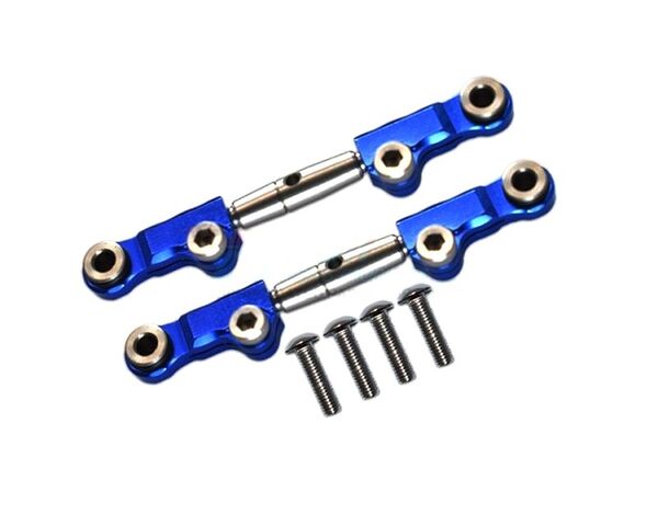 GPM ALUMINUM+STAINLESS STEEL FRONT UPPER ARM TIE ROD -6PC SET Accessories: Front Upper Arm Tie Rod-2pcs Stainless Steel Round Head Screw 2.5x10-4pcs Original Name / Part No: LOS214013 Part location: Front upper arm tie rod Does this product replace a specific part or function? yes Product major function & usage: Support front chassis and adjust the angle of rear wheels. Is this part adjustable? If yes … how and why/purpose? How: Insert tool into positioning hole of tie rod Purpose: Adjust the length of tie rods Major advantages of upgrading to this product: 1. Made with a quality light weight high tensile strength aluminum 6061 T6 for greater durability. 2. Stainless steel is a strong material with great durability and stability. It can also prevent rusting. 3. Adjustable design using clockwise and counterclockwise threads. Note: the data of this product is not the standard data when it leaves the factory, so it needs to be adjusted by the customer