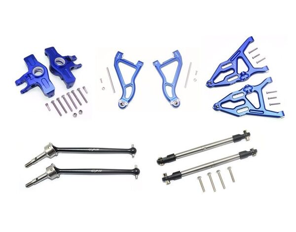 PM Racing - TRAXXAS - UNLIMITED DESERT RACER - UDR1000 Aluminum Upper&lower Arms+Knuckle Arms+Harden Steel CVD+SST Turnbuckle Alu Tuning Set zum attraktiven Paketpres zum für den Traxxas Unlimited Desert Racer für bessere Performance, Stabilität und Optik in hochwertigem 6061T6 Aluminium und Stahl. Ersetzt 1:1 die Originalteile 10-Teilig, bestehend aus: Lenkhebel (2) Querlenker Vorne Oben (2) Querlenker Vorne Unten (2) CVD Antriebswellen (2) Vorspur Links (2) Original Name / Part No.: 8552+8531+8532+8550+8553+8547 Part location: Front upper & lower arms, knuckle arms, CVD, front steering area Knuckle arms: Stabilize the CVD and front + rear arms in order to assist steering. Front upper & lower arms: To support front knuckle arms, increase stability of the vehicle. Turnbuckle: Assist the knuckle arms to complete steering process. CVD: Transfer the power from the motor to the front wheels. Is this part adjustable? YES How: Insert tool into positioning hole of tie rod. Purpo