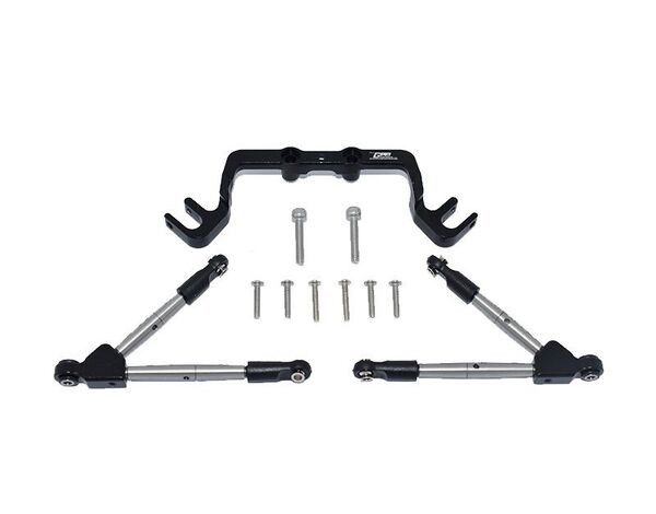 GPM Racing - TRAXXAS - HOSS 4X4 VXL - HS049F Aluminum Front Tie Rods With Stabilizer For C Hub Alu Tuning und Verstärkung der Vorderachse beim Traxxas Hoss 4x4 VXL This product includes : Tie Rods + Stabilizer-3pcs Stainless Steel Cap Head Screw 4x20-2pcs Stainless Steel Round Head Screw 3x16-2pcs Stainless Steel Round Head Screw 3x14-4pcs Part location: Top of C-Hub, both sides of front gear box, center support mount area Product major function & usage: To support and stabilize Is this part adjustable? YES How: Insert tool into positioning hole of tie rod Purpose: Adjust the length of tie rods 1. Made with a quality light weight high tensile strength aluminum 6061 T6 to be more durable and better support for the vehicle. 2. Counter-clockwise thread, adjustable length for the tie rod. 3. This new innovative triangular design gives stronger stability yet retains the overall needed flexibility