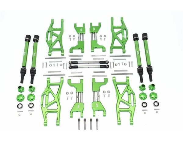 GPM Racing - TRAXXAS - MAXX 4S MONSTER TRUCK - TXMS100 Aluminum Front + Rear Upper+Lower Arms+Front + Rear Adjustable CVD Drive Shaft+Hex Adapter+Wheel Lock+Stainless Steel Adjustable Front Steering Tie Rod(widening Kit)