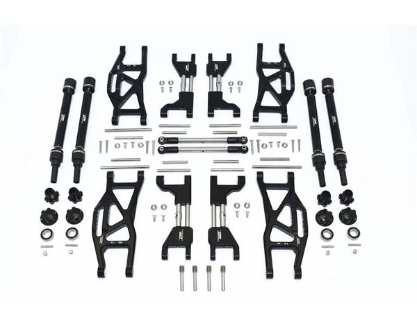 GPM Racing - TRAXXAS - MAXX 4S MONSTER TRUCK - TXMS100 Aluminum Front + Rear Upper+Lower Arms+Front + Rear Adjustable CVD Drive Shaft+Hex Adapter+Wheel Lock+Stainless Steel Adjustable Front Steering Tie Rod(widening Kit)