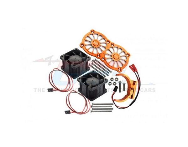 GPM ARRMA Kraton, Outcast 8s - TRX XMAXX / XO-1 Aluminium Motorkühlkörper mit Dual-Ventilator Orange