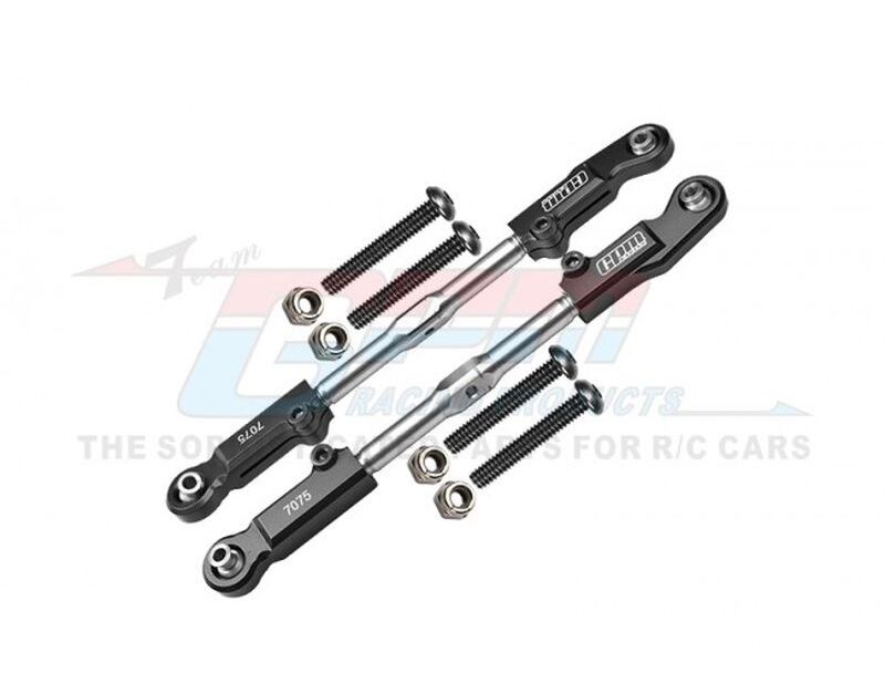 GPM ARRMA Kraton Outcast Notorius Fireteam 6s Edelstahl Spurstange mit Alu-Kugelpfannen oben vorn Schwarz Part location: Rear camber links Product major functions & usage: Support rear chassis and adjust the angle of rear wheels. Major advantages of upgrading to this part/product: (1) Made with a quality light weight high tensile strength aluminum 7075-T6 for greater durability. (2) Middle end stainless steel material, is a strong material with great durability and stability. It can also prevent rusting. (3) Adjustable design using clockwise and counterclockwise threads. (4) The design for steel pivot ball postion is same as original. It is arcuated" shape,the steel pivot ball will not fall off easily. Note:the data of this product is not the standard data when it leaves the factory, so it needs to be adjusted by the customer Adjustable: How: Insert tool into positioning hole of tie rod Purpose: Adjust the length of tie rods Package includes: Rear camber li