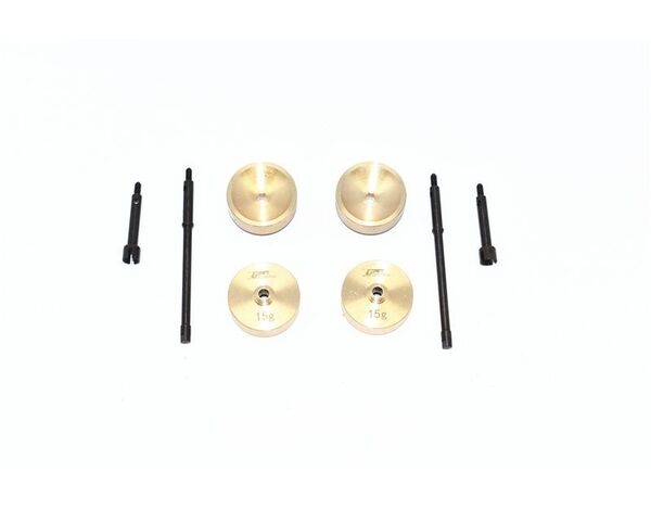 GPM Racing - AXIAL Racing - 4WD SCX24 DEADBOLT - SCX247FRSX+5 Harden Steel 45 Front CVD Joint+Rear Drive Shaft + Brass Pendulum Wheel Knuckle Axle Weight Tuning Antriebswellen mit Spurverbreiterung und Gewichtstuning 15 Gramm pro Rad mit Messingteilen und gehärtetem Stahl This item is suitable for AXIAL-1/24 4WD SCX24 DEADBOLT-AXI90081 and AXIAL-1/24JEEP WRANGLER JLU CRC-AXI00002 This product includes : Front CVD joint-2PCS Rear drive shaft-2PCS Pendulum Wheel Weight-4PCS Original Name / Part No: AXI31610+AXI31609 To increase the weight of each wheel to stabilize the wheel, enlarge the angle of crawling, especially when the car is digging into some low lying area landspaces, grab the ground firmly and smoothly drive back to level. Major advantages of upgrading to this part/product : 1.The additional weight is kept downwards so the crawler is more grabby to the ground and able to crawl in a larger angle. 2. Extended length by 5mm to widen the wheel track in order to d