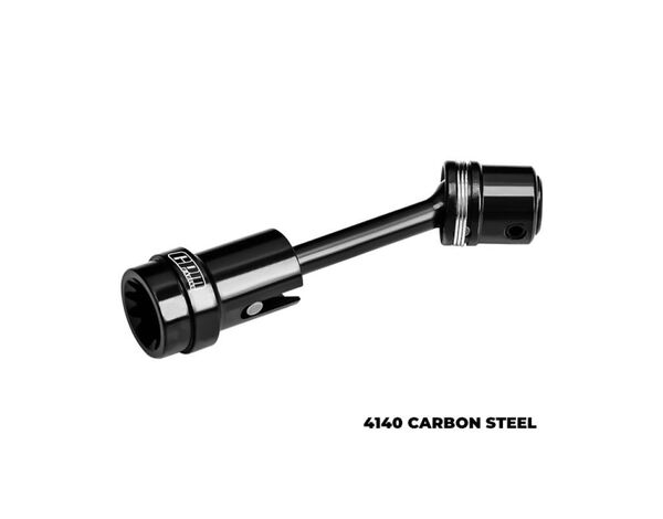 Upgrade your Unlimited Desert Racer’s driveline with this steel front center driveshaft. Large drive pins are press-fit into the axle for extra security and move smoothly through the tough steel drive cups for maximum power transfer. Includes steel shaft, front and rear drive cups, and M4x2.5x12.5 screw pin.
