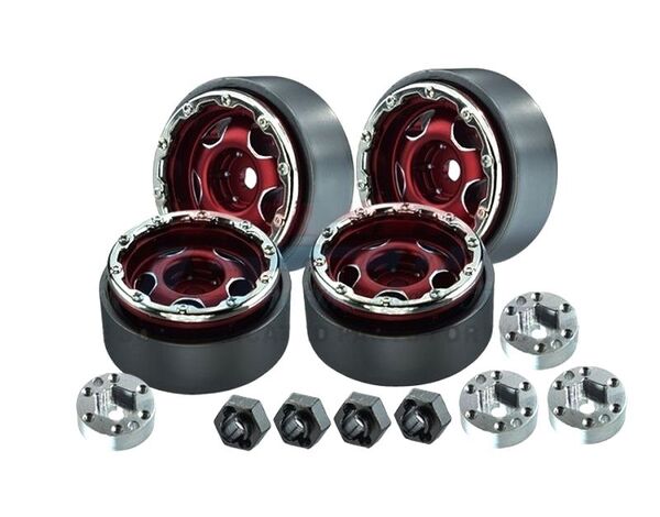GPM TRX-4M. SCX24 Beadlock 1.0 Stern-Felgen Alu rot 26.5x13.2mm (4) 4 Alufelgen ohne Reifen Packaging Includes: Wheel rims-4pcs Hex-4pcs Metal weighting feeder-4pcs Applicable: 1:18, 1:24, 1:14 scale model cars, such as TRAXXAS TRX4M, AIXAL SCX24 etc. This 1 inch wheel rims need to be used with tires with an inner diameter of 1 inch , also can be used with TRX4MZSP19A,TRX4MZSP19B,TRX4MZSP20A,TRX4MZSP20B,TRX4MZSP21A,TRX4MZSP21B,TRX4MZSP22A,TRX4MZSP22B,TRX4MZSP23A,TRX4MZSP23B,TRX4MZSP24A,TRX4MZSP24B from GPM. Precautions: Packaged in loose parts, need to install by yourself according to the display diagram. The main body is made of aluminum, and the middle ring is made of heavy zinc alloy, with its own counterweight effect. A box of 4 wheel rims. Equipped with metal weighting feeder, metal color separation, using M1 simulation screws. The vent design of the middle ring is more convenient for tire covering. Suitable Model: TRAXXAS-1/18 4WD TRX4M FORD BRONCO-97074-1 TRAXXAS-1/18 4WD T