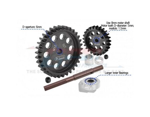 (2) The upgraded 40Cr Carbon steel Spur Gear 33T M1.5 and large gear shaft, bearing and aluminum 7075 fixed mount bring out three-point support, which is better than the original two-point support in stability and transmission effect.