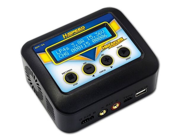 Mit seiner Ladeleistung von 60W lädt der HERAKLES MINI 2-4S Lithium Akkus mit bis zu 6 Ampere auf schnellste Weise.