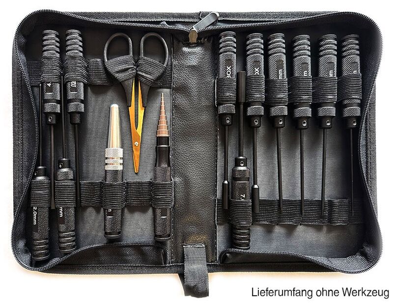 Unsere H-SPEED Stealth Tools sind komplett in edlem Schwarz gehalten und unverzichtbar in jedem Rennstall. Alle Werkzeuge bestehen aus extra hartem und langlebigem Material und sind mit gelasertem Logo und Grössenbezeichnung versehen. Verfügbar in diversen Sets oder einzeln, bieten die 4er Sets eine schicke Box und die Komplettsets eine praktische Werkzeugtasche. Qualität und Stil vereint für den perfekten RC-Rennsport!