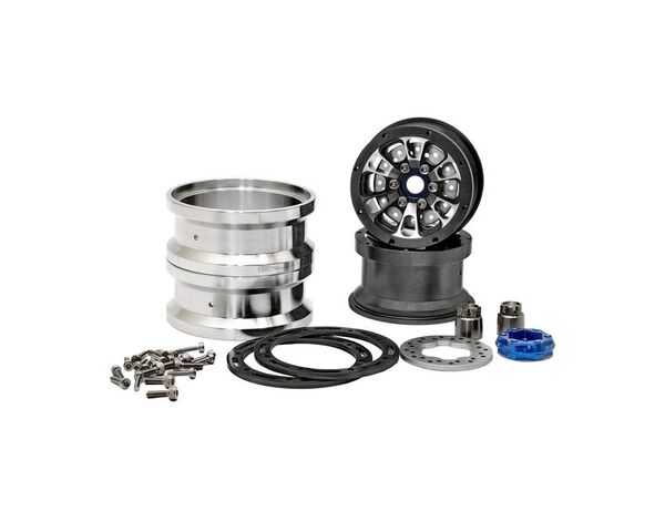 H230117B CNC Alu.1.9"beadlock ring 6 Spoke Wheels Set (Black) W/ Brak