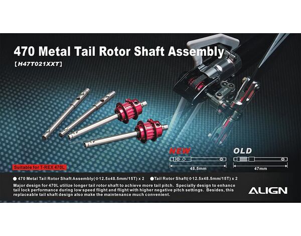 H47T021XXT Align T-REX 470 Metal Tail Rotor Shaft Assembly