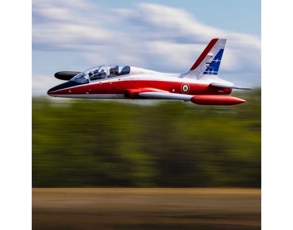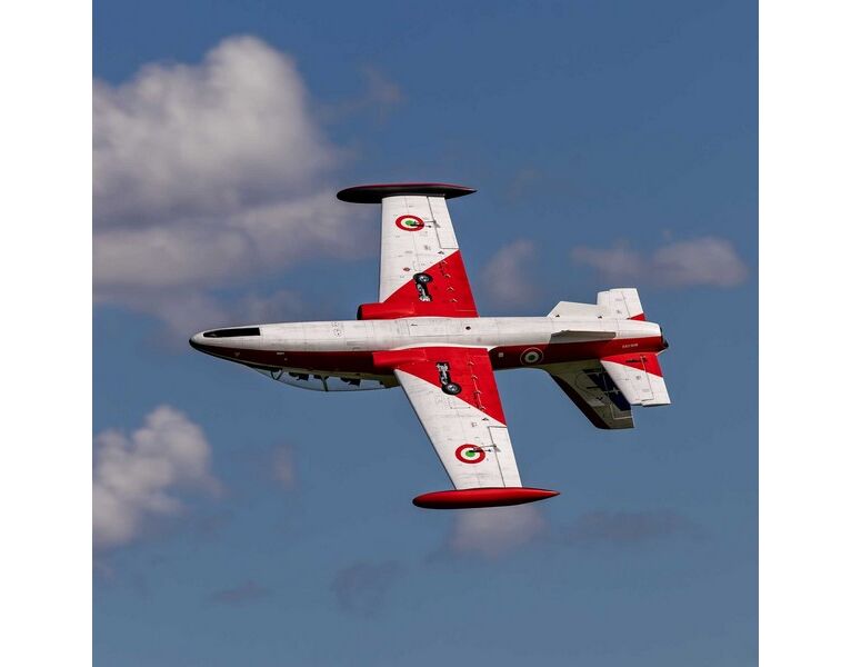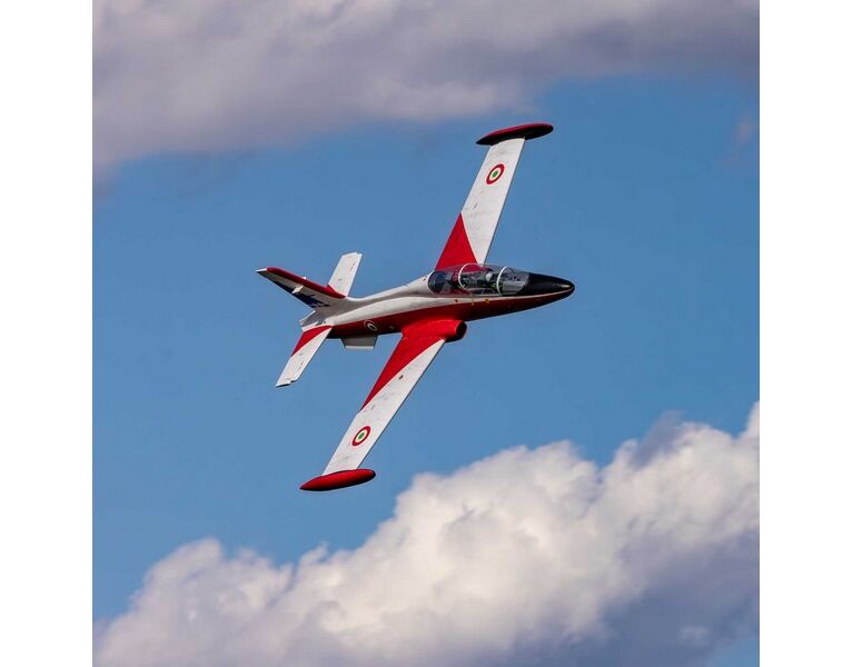 Der erste Turbinenjet von Hangar 9 ist die perfekte Wahl für erfahrene Piloten, die in die Turbinenfliegerei einsteigen möchten. Ebenfalls eignet sich das Modell auch ideal als Allrounder mit hervorragendem Preis-Leistungs-Verhältnis für erfahrene Jetpiloten. Das Vorbild, die Aermacchi MB-339 wurde in den 1970er Jahren von Alenia Aermacchi SpA als Militär-Trainer und leichtes Kampfflugzeug entworfen und hergestellt. Dieses ARF-Modell wurde entwickelt, um Modellfliegern ein einfach zu fliegendes und dennoch voll kunstflugtaugliches Jet-Modell für Turbinen von 60-86N zu bieten. Die leichte Balsa-/Sperrholzkonstruktion mit Kohlefaserverstärkungen ist mit bedruckter Folie in einem Scale-Farbschema bespannt, dass u.a. Blechstöße, Nieten und ein Weatherung darstellt.