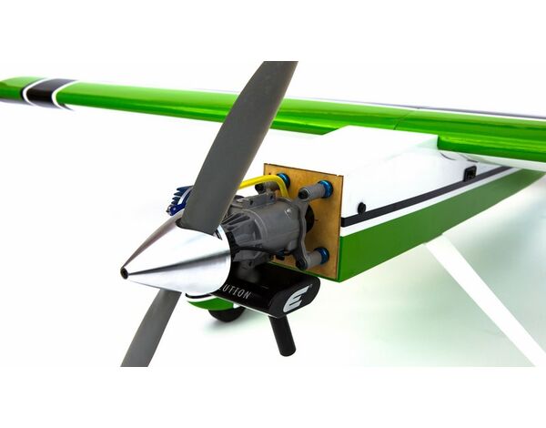 Den Motorisierungsmöglichkeiten sind keine Grenzen gesetzt. Egal ob elektrisch oder mit verschiedensten Verbrennungsmotoren. Der Motorspant kann jeden Motor aufnehmen und durch den mit Magneten verschlossenen Zugangsdeckel des vorderen Rumpfteils können sowohl die Lipos getauscht werden, nachgetankt werden, als auch der Empfängerakku nachgeladen werden.