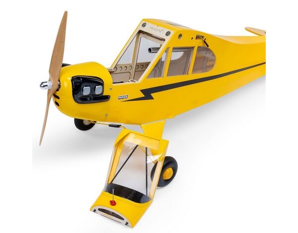 Die Hangar 9® J-3 Cub 10cc ist ein 2,1m großer Nachbau der Luftfahrtikone. Sie wurde entwickelt, um das klassische Aussehen des Originals mit modernen Funktionen und Ausstattungsmerkmalen zu verbinden, darunter ein zweiteiliger Flügel und einer Aufnahme für das Steckungsrohr im Rumpf für die Zeit der Lagerung und des Transports. Die ARF-Version wird größtenteils werkseitig montiert geliefert und ermöglicht dir die Installation eines .62 4-Takt Glühzündermotors, eines 11cc 4-Takt Benzinmotors und anderer Motoren ähnlicher Klasse oder eines gleichwertigen elektrischen Antriebssystems und der von dir bevorzugten Elektronik. Die PNP-Version erfordert keinen Klebstoff für die Montage. Sie ist mit vier werkseitig installierten Spektrum A6380 Digital Servos mit Metallgetriebe, einem 4S- bis 6S-kompatiblen Avian 4260 480Kv Außenläufermotor und einem 70A Smart-Lite-ESC ausgestattet, der eine Vielzahl von Telemetriedaten des Antriebssystems mit Smart- und Nicht-Smart-Akkus über kompatible Empfänger und mit Spektrum AirWare ausgestattete Sender bereitstellen kann.