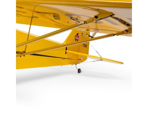 Beide Versionen enthalten ein vorbildgetreues Fahrwerk mit Standardrädern und Cub-Radkappen. Du hast auch die Möglichkeit, Radverkleidungen oder Schwimmer mit dem speziellen Schwimmerstrebensatz (alle separat erhältlich) zu installieren. Die Flugzeugzelle besteht aus Balsaholz und leichtem Sperrholz und ist werkseitig mit UltraCote®-Folie bespannt. Eine Vielzahl vorbildgetreuer Details, darunter klare Fenster, Tragflächenstreben, Spanndrähte und mehr sorgen für ein klassisches Cub-Erlebnis, das perfekt für eine breite Palette von fortgeschrittenen bis erfahrenen Piloten ist!