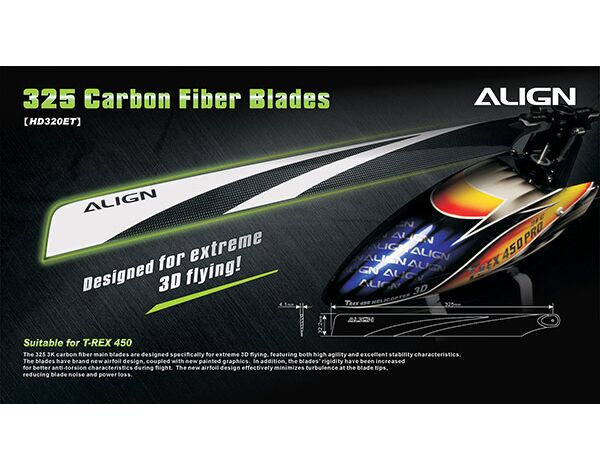 HD320ET Align T-REX 325 Carbon Fiber Blades / Black