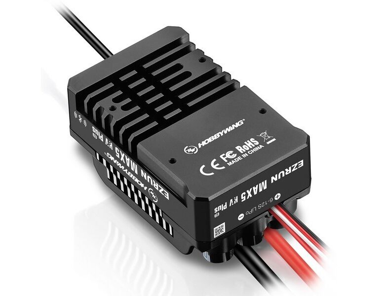 Die intelligente Freewheeling-Funktion, die automatisch die Effizienz optimiert und die Betriebstemperatur senkt sorgt für eine außergewöhnliche Zuverlässigkeit und Stabilität. Zusätzlich verfügt der MAX5 HV Plus G2 Regler über integriertes Bluetooth sowie ein Data-Logging-Modul, das bis zu 10 Minuten Betriebsdaten aufzeichnet und speichert. Auf Software-Ebene unterstützt der Regler in Kombination mit den EzRun 5690/56118 G2 Motoren Turbo Timing, was die maximale Geschwindigkeit um weitere 18 % steigert.