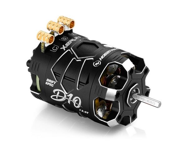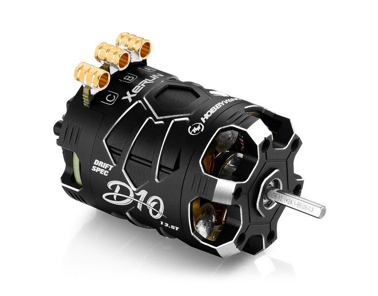 Xerun D10 Brushless Drift Motor 13.5T SchwarzDriften kann für Motoren gerne schon einmal zur Herausforderung und Belastungsprobe werden. Die Xerun D10 Motoren von Hobbywing wurden speziell für diesen RC-Bereich konzipiert und werden jeglichen Anforderungen gerecht, wenn es heißt, sich ordentlich in die Kurve zu legen.Mit dem richtigen Timing kann die Leistung des Fahrsystems optimal ausgenutzt werden. Deshalb verfügen die D10-Motoren unter anderem über eine große Auswahl an Möglichkeiten verschiedene Timings einzustellen. Mit nur einem Schraubendreh auf der Rückseite des Motors kann das Timing anhand der weißen Linien frei den eigenen Ansprüchen angepasst werden.Neu bei diesen Motoren ist der am Rotor verbaute Lüfter. Denn ein erhöhtes Timing für eine erhöhte Drehzahl sorgen, was wiederum schnell zu einer erhöhten Temperatur führen kann. Durch den Lüfter allerdings wird ein Luftstrom erzeugt, der den Motor während der Fahrt auf ideale Weise kühl hält.Eigenschaften:I