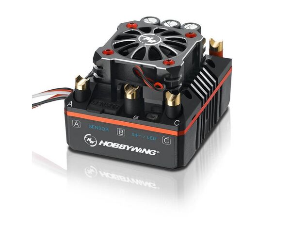 Die Leiterplatine im Inneren des Reglers ist mir dem Hobbywing patentiertem wärmeleitenden Kupferschienen ausgestattet welche die Wärme schnell an das CNC gefertigte Aluminium Kühlkörpergehäuse ableiten. Darüber hinaus hilft der Lüfter die Wärme optimal abzuführen. Dieser ist zudem im Anti Shock Design entwickelt um auch bei häufigen Sprüngen seinen Dienst zuverlässig zu tätigen. Dank diesem hocheffizienten Kühlsystem wird der Regler seinen Dienst immer im optimalen Temperaturbereich vollrichten.