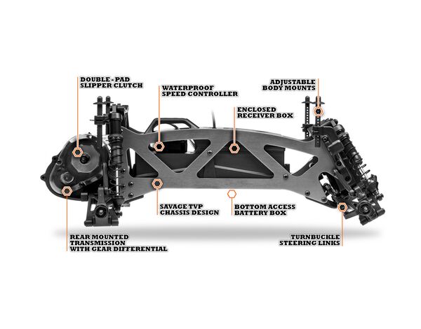 Der Jumpshot ST ist die Stadium Truck Version der Jumpshot Plattform und kommt mit einer coolen, schmalen Racing Karosserie und der extrabreiten Haltung durch die großen Offroad Reifen ist der Jumpshot ST ein echter Hingucker und sein Savage-Style TVP Chassis sowie der mittige Schwerpunkt garantieren Stabilität und ein hervorragendes Fahrverhalten! Das bausteinförmige Design des Jumpshot ST ermöglicht schnelle und einfache Wartungsarbeiten und schützt sicher die Elektronik bei Crashs. An den Fahrakku kommt man bequem von unten dran, sodass der Akkuwechsel in Windeseile durchgeführt werden kann!