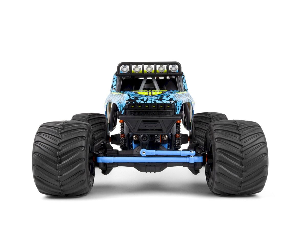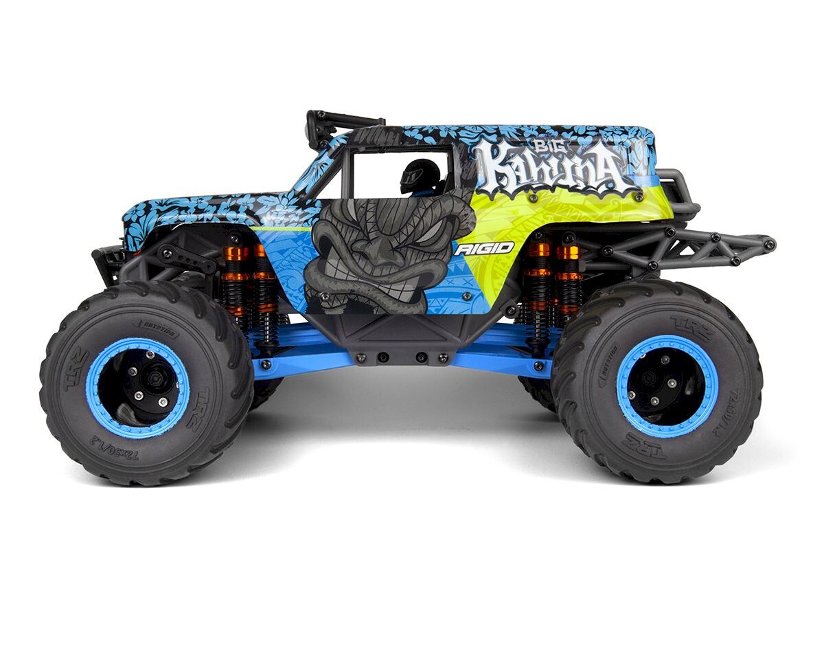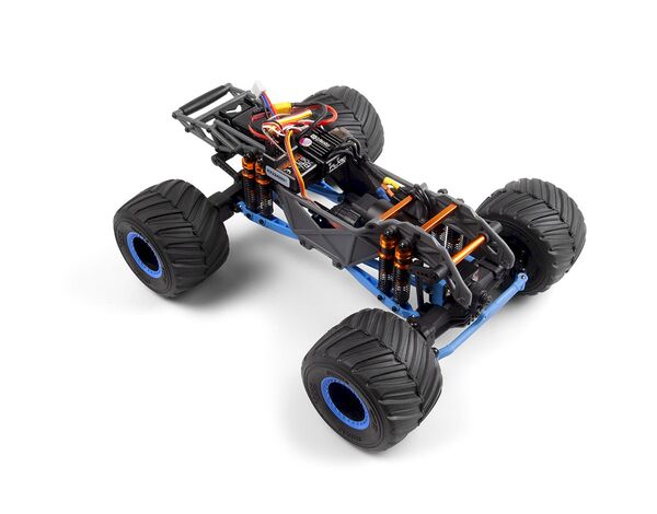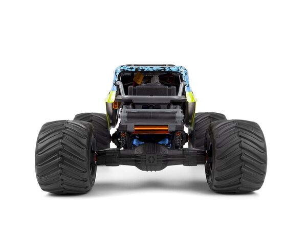 Ein robustes TVP-Verbundchassis, zwei ölgefüllte Stossdämpfer an allen vier Ecken und massive neue Achsgehäuse mit Dreigang-Differenzialen verwandeln diesen Truck in ein kompaktes Kraftpaket. Ein Ein-Gang-Getriebe treibt gegenläufige CVD-Stahl-Mittelwellen für eine gleichmäßige Kraftübertragung an, während hochbelastbare Unterlenker und die offiziell lizenzierte Big Kahuna-Karosserie die Verwandlung vervollständigen.