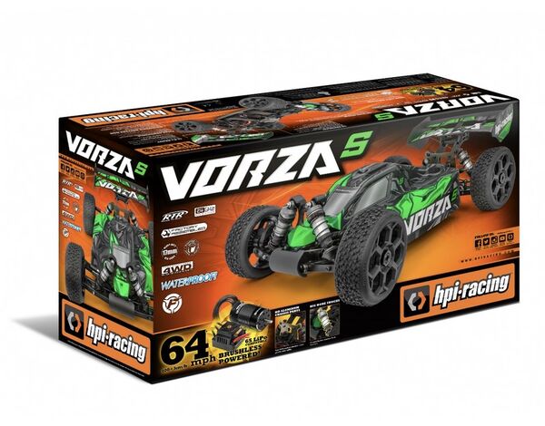 Unter der Karosserie hat jeder neue Vorza Buggy eine Menge großartiger Haltbarkeits- und Tuning-Merkmale, die es zu einem Vergnügen machen, ihn zu fahren, mit einem klaren Upgrade-Pfad zur "S"-Spezifikation und darüber hinaus! Der Vorza nimmt das rennerprobte Design und mischt es mit HPI FLUX Technologie, um Dir eine atemberaubende Geschwindigkeit zu bieten! Dieser RTR-Buggy kann auf BMX-Sprünge mitgenommen werden, um haarsträubende Big-Air-Action zu erleben, und dann kannst Du ihn direkt auf jede Rennstrecke mitnehmen, um Rennaction auf höchstem Niveau zu erleben - er wird alle Blicke auf sich ziehen und Deine Freunde zum Staunen bringen!