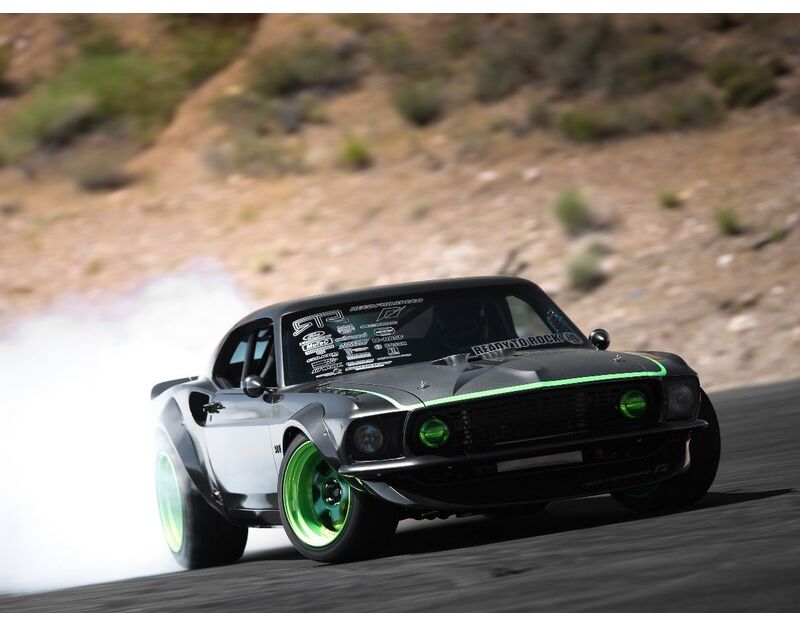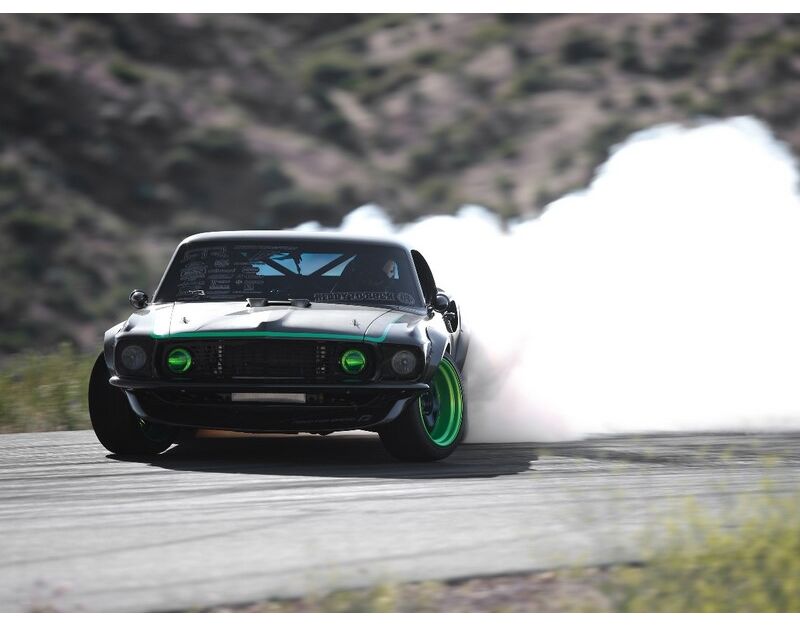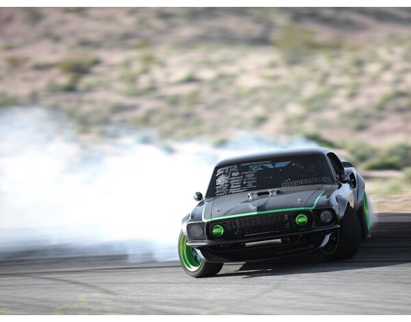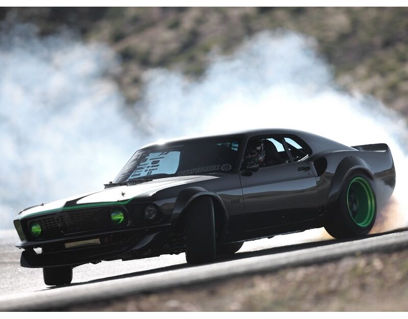 Vaughn vereint 5,0 Liter reifenzerfetzende amerikanische PS mit Designeinflüssen aus der amerikanischen, japanischen, europäischen und Driftkultur. Er hat modernste Technologie integriert und gleichzeitig ein nostalgisches Flair in seine Vision der zeitlosen Karosserie des Ford Mustang von 1969 bewahrt.
