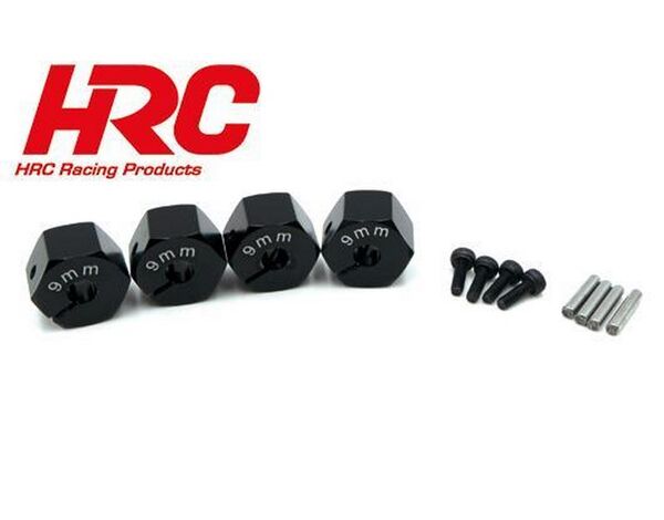 HRC1082BK9 1/10 Touring / Drift Aluminium 12mm Radmitnehmer 9mm Breit Schwarz (4 Stk.)