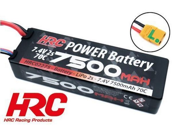 HRC Akku - LiPo 2S - 7.4V 7500mAh 70C - RC Car - Hard Case - XT90AS 138.5x46.5x25mm