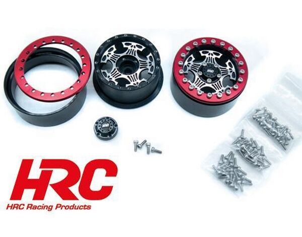 HRC Felgen 1/10 Crawler 1.9'' 12mm Hex Aluminium Skull Beadlock - Rot (4)