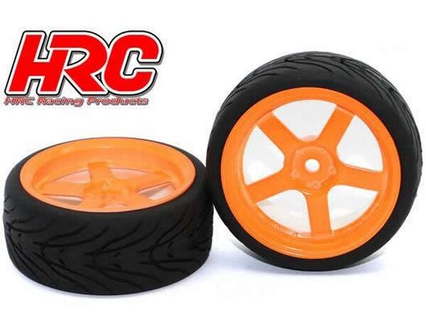 HRC61021OR HRC Racing Reifen - 1/10 Touring - montiert - 5-Spoke Orange Felgen - 12mm Hex - HRC Street-V II (2 Stk.)
