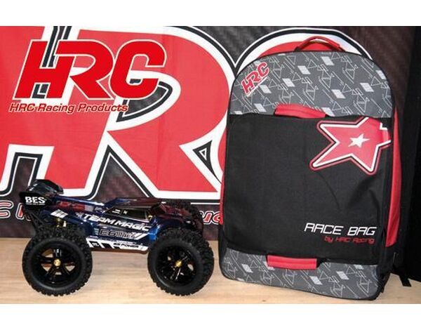 Der RACE BAG von HRC RACING bietet jede Menge Platz für Modellgrössen im Masstab 1/10-1/8. Ob 1/10 Tourenwagen oder 1/8 Monstertruck - der RACE BAG trägt sie alle! So haben Sie die Hände frei für weiteres Gepäck oder um mit Ihrem 2-Rad zur Strecke zu fahren.