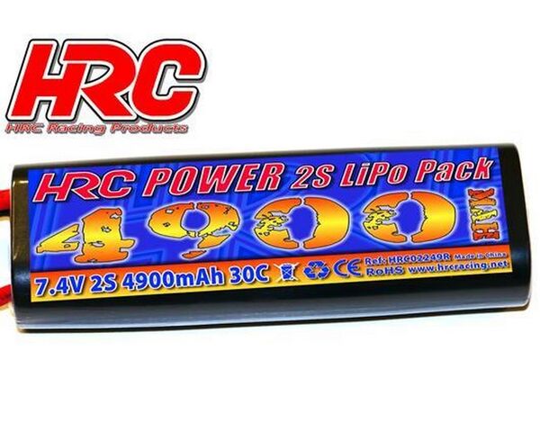HRC02249RT Akku - LiPo 2S - 7.4V 4900mAh 30C - RC Car - HRC 4900 - Rounded Hard Case - Tamiya (Dean's Kompatible) Stecker