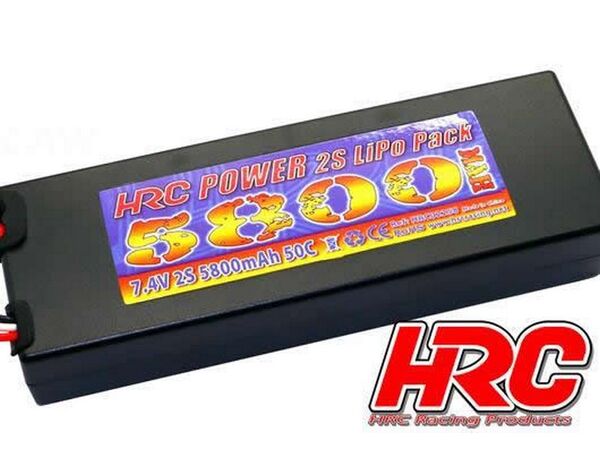 HRC02258D Akku - LiPo 2S - 7.4V 5800mAh 50C - RC Car - HRC Power 5800 - Hard Case - Ultra T (Dean's Kompatible) Stecker