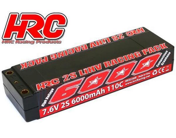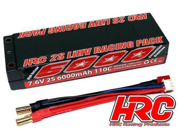 HRC02260R5 Battery - LiHV 2S - 7.6V 6000mAh 110C - RC Car - HRC 6000 Graphene - Hard Case - 5mm Plug