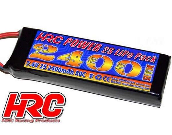 HRC04224D Akku - LiPo 2S - 7.4V 2400mAh 50C - RC Car Micro - HRC Power 2400 - Ultra T (Dean's Kompatible) Stecker
