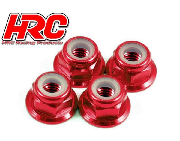 HRC1051RE Radmuttern - M4 nyloc geflanscht - Aluminium - Rot (4 Stk.)