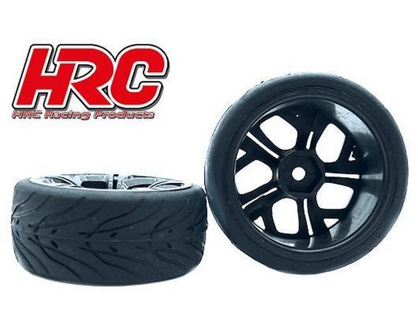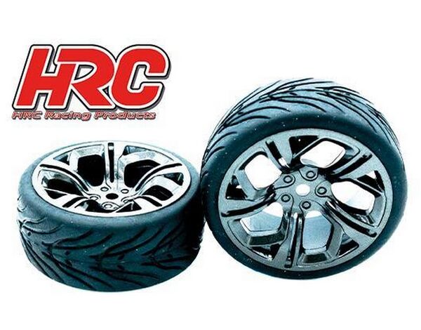 HRC61016C Reifen - 1/10 Touring - montiert - Inferno Gunmetal Felgen - 12mm hex - HRC Street Devil (2 Stk.)