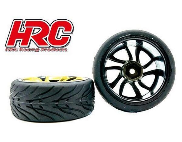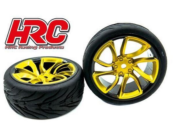 HRC61016D Reifen - 1/10 Touring - montiert - Turbo Gelb Felgen - 12mm hex - HRC Street Devil (2 Stk.)