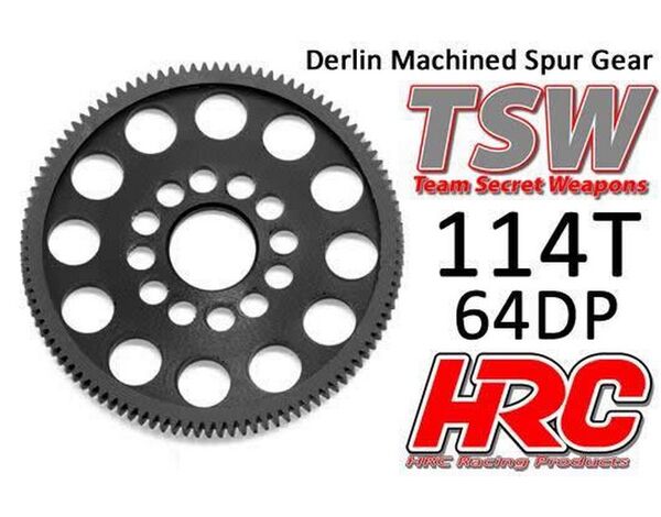 HRC764114LW HRC Racing Hauptzahnrad - 64DP - Low Friction Gefräst Delrin - Ultra Light - TSW Pro Racing - 114Z