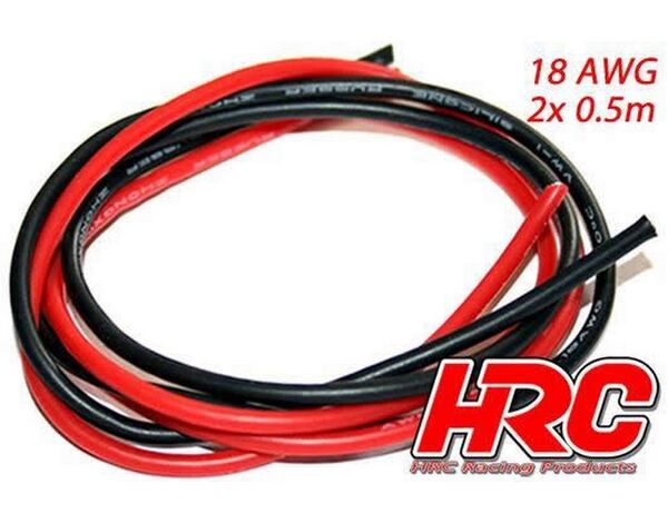 HRC9551 Kabel - TSW Pro Racing - 18 Gauge / 0.8mm2 - Silber (150 x 0.08) - Rot und Schwarz (0.5m jedes)