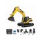 Merkmale: Hochpräzise Ganzmetallkonstruktion: Metallarm, -schaufel, -chassis und -ketten für realistische Gewichtsverteilung, Stabilität und Leistung. Vollproportionale Steuerung von Ausleger, Schaufel und Drehkranz. 360°-Drehung von Drehkranz und Kabine. Unabhängige proportionale Kettensteuerung (links/rechts). Realistische Soundeffekte. Schnellwechselsystem.