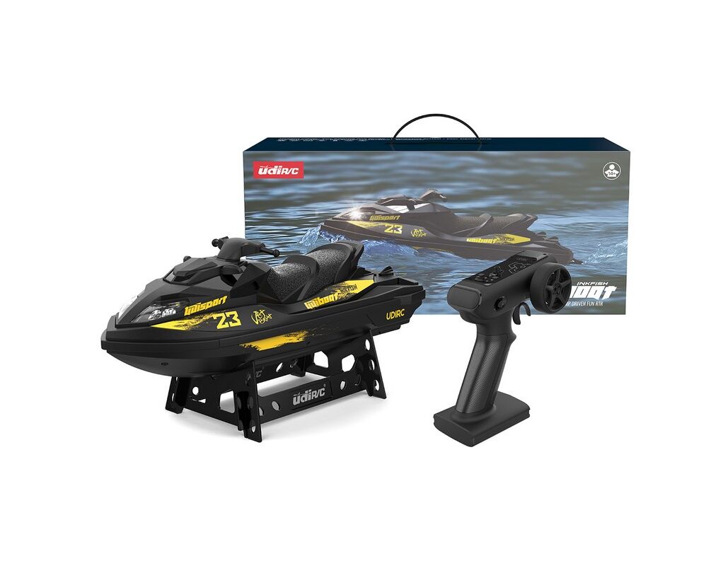 Fahrfertiges Jet Boat UDI023PRO, 2,4 GHz-Sender, 7,4 V 2000 mAh Akku, USB-Ladegerät, Anleitung.