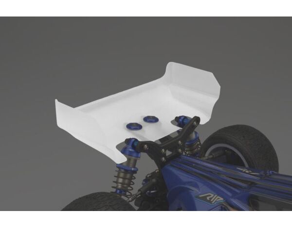 The shorter chord has less rear overhang allowing for quicker rotation in the 180 degree turns and will have less impact in gusty wind conditions or long aerial maneuvers. The center channel is just narrow enough for the B6 wing mount assembly but drops the wing at just the correct height and position. The side-dams feature large openings for tire clearance and expansion.