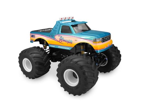 During the mid-1990’s the full-scale monster truck racing scene was at its all-time most competitive. Never before had so many factory backed teams competed for the coveted racing championships during that time period. The Ford bodies were always successful, however, never had one style been so dominant. The 1993 Ford F-250 body was the standard and the top of the line in terms of looks, popularity and performance back during this hey-day of monster truck racing. Never before has this body style been available for 1/10th scale Monster Truck racing, that is until JConcepts pulled the trigger.