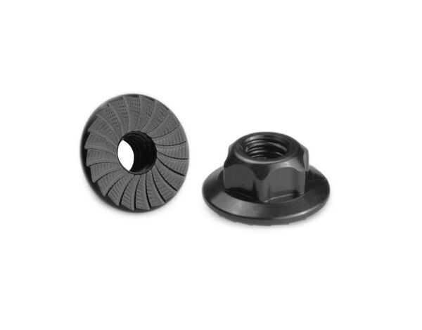 J2341-2 JConcepts - 4mm large flange serrated locknut - black (fits B5 TLR Xray Serpent Kyosho)