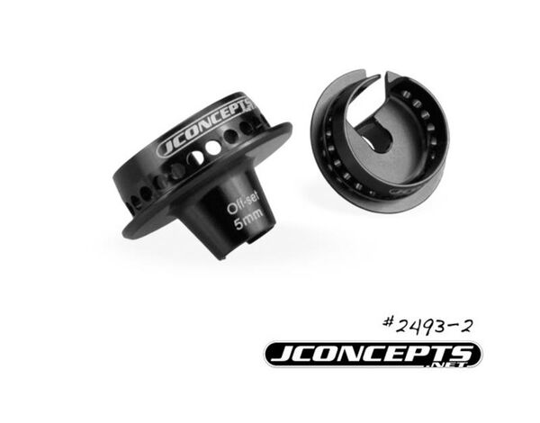 J2493-2 JConcepts - Fin 5mm Offset Federteller - Schwarz (2 St.) (Passend für B6 / B6D langes und kurzes shock eyelet) The spring cup is a finishing touch when it comes to a complete shock build for spring concentricity. The JConcepts spring cups are a 5mm off-set which is the most popular setting on the B5M |T5M and SC5M. The aluminum material in either blue or black anodizing provides a healthy footing for the hot new spring of choice or the trusty stock AE spring set. The cups feature a unique shock shaft path which helps lock the spring cup in position during hard crashes or collisions. Etched with off-set identification and JConcepts.net logo the new spring cups are top notch replacements. Features: JConcepts design and function Aluminum, light-weight / durable construction Unique path to help lock positioning Available in blue or black anodized colors Etched logos for identification Aesthetic shock jewelry