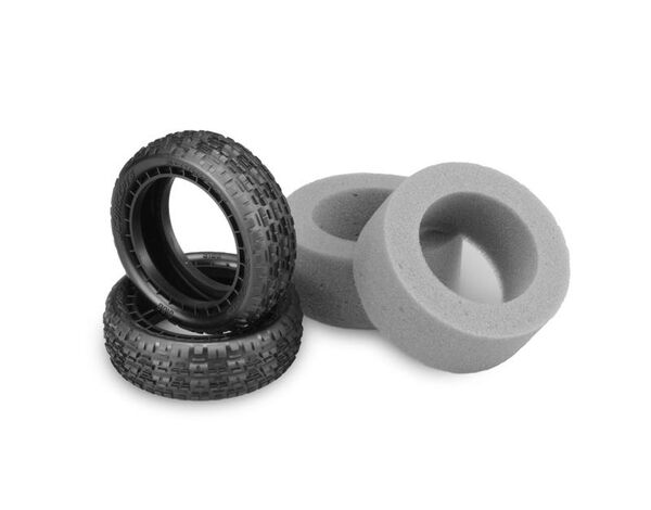 J3166-010 JConcepts 1:10 Buggy Swaggers 4WD Vorne (Pink - Medium Soft) mit grauen Einlagen - 2 St. 1 Paar Reifen mit Einlagen für 1/10 Buggy 4WD Vorne The Swagger 4wd front tire has a multitude of heights and angular ribs for corner speed, consistency and straight-line tracking ability. The Swagger has shown to produce ultra fast lap times while also being easier to drive than other options on the market. The front tires are designed for the width of the 4wd front wheels but will also fit a standard 2wd front wheel which are already available from JConcepts. The ultra low-profile carcass keeps a 4wd buggy very predictable and consistent in high-grip conditions while pointing the vehicle in the correct direction. JConcepts has added side-wall ribs in a circular pattern to the exterior of the tire to support high-grip racing. The pink compound marked with 2 pink dots on the tire represents a new compound for JConcepts, a medium soft material with good wear characteristics. Since the