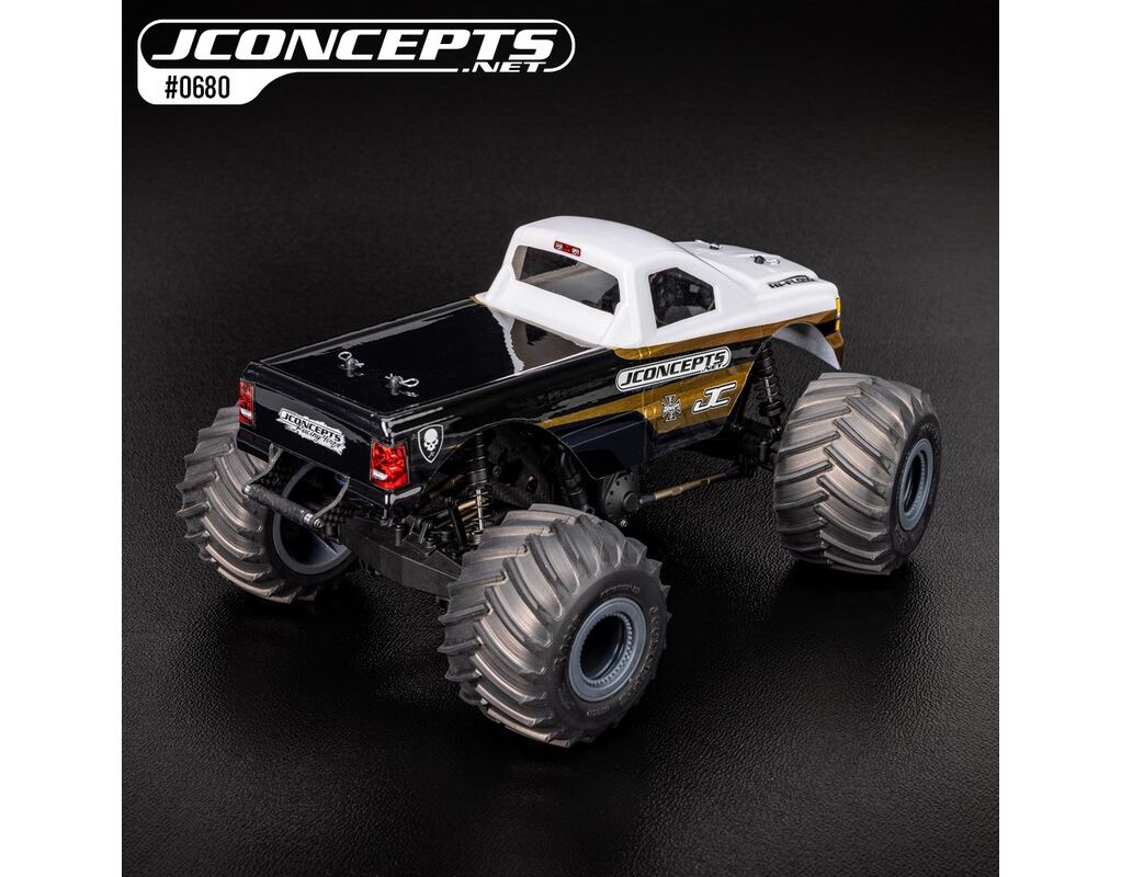 Die JConcepts 2005 Chevrolet Silverado Karosserie bringt den markanten Look des legendären Single-Cab-Trucks auf den Mini LMT. Offiziell von Chevrolet lizenziert, besticht die Karosserie mit „Cat-Eye“-Scheinwerfern, Twin-Port-Grill, durchgehendem Stoßfänger und Power-Hump-Motorhaube für einen kraftvollen und aggressiven Auftritt. Das markante Frontdesign und die großen Radöffnungen sorgen für echtes Monster-Truck-Feeling bei gleichzeitig guter Aerodynamik.